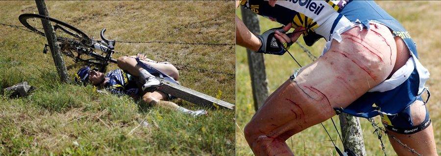 Tour De France Crash Barbed Wire / Tour de Carnage: Crashes in 2011 TDF - Gear Junkie - Last year's tour de france winner and runner up were unable to match alaphilippe's pace and even when the road evened out the frenchman had enough in the tank to take the win, despite being a crash victim earlier in the day, with michael matthews (team bikeexchange) and roglic rounding out the top.